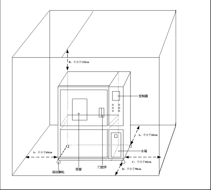 5.設備周圍留有適當的使用及維護空間,如下圖所示: