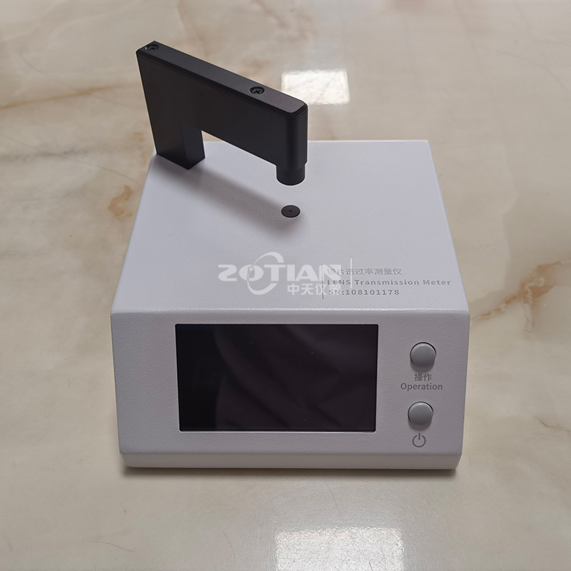 OT-850B鏡片透過率測試儀的測試原理是采用紅外850nm光源,紅外940nm光源和可見550nm光源照射被測透明物質(zhì),感應(yīng)器分別探測三種光源的入射光強和透過被測透明物質(zhì)后的光強,透過光強與入射光強的比值即為透過率,用百分數(shù)表示。
