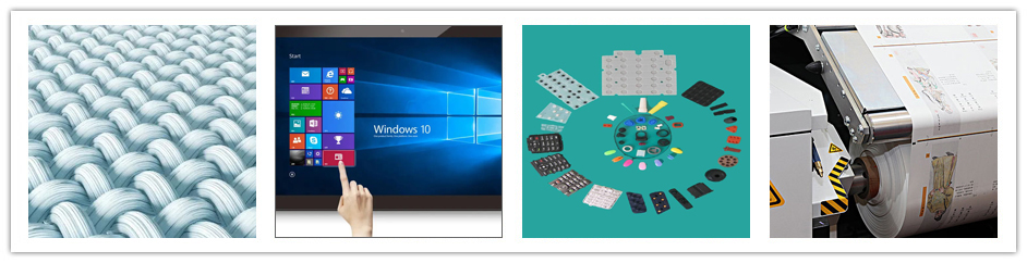 觸摸屏行業(yè)、印刷行業(yè)、薄膜、高分子、電子材料、仿生材料、纖維紡織行業(yè)等。