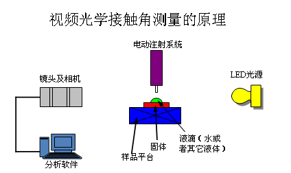 對于理想的平面固體表面,當液滴在表面達平衡后。只有一個符合Young方程的接觸角。但實際固體表面是非理想的,因而會出現滯后現象,致使接觸角的測量往往很難重復。但經過精心制備和處理的表面,有可能得到較重復的數據,特別是高分子的表面。表面的制備和處理的目的是要得到較光滑、干凈的理想表面,但具體的工藝因樣品而異,這里不作更多的介紹。這里主要介紹一些常用的接觸角測定方法,它們都是針對氣—液—固體系的接觸角而設計的。但其中有些方法,只需略加修改,亦適用于液—液—固體系接觸角的測定。測定接觸角有多種方法,可根據直接測定物理量分為四類:⑴靜滴法(角度測量法)、⑵高度、長度測量法⑶力測法⑷透過測量法。前三種適用于連續(xù)的平滑固體表面,后一種方法可用于粉末固體表面接觸角的測定。